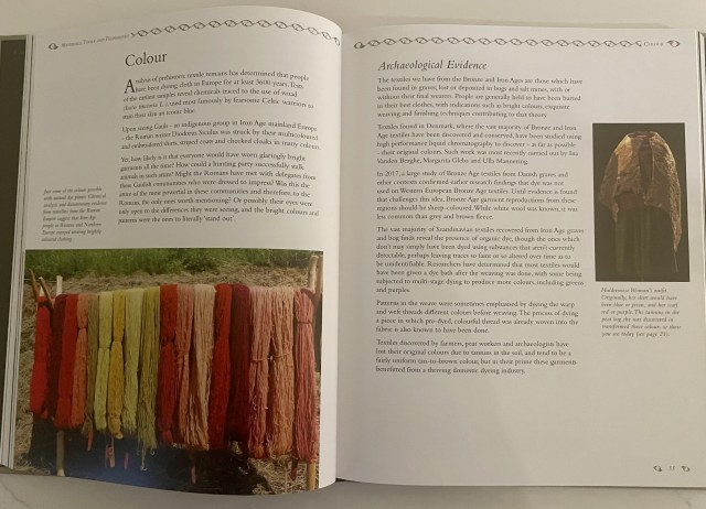 The author is a Canadian historian, and it is clear that this book is a labour of love. It is thoroughly researched with reference to historical context and archaeological finds. It is also beautifully illustrated, and takes the reader from ancient breeds of sheep, and traditional evidence of flax, to the spinning, dying, weaving and sewing patterns.