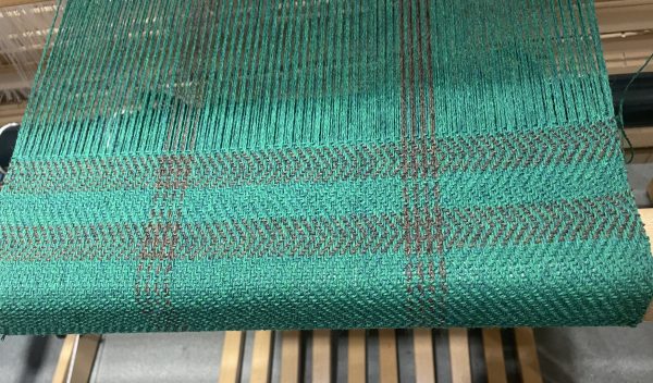 I am using a Shetland 2-ply wool, instead of the single-ply handspun that was used in the original. But otherwise I have kept the scale, the horizontal point twill, and the contrast stripes.